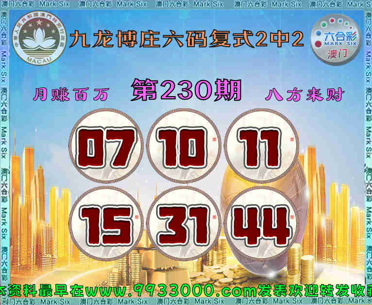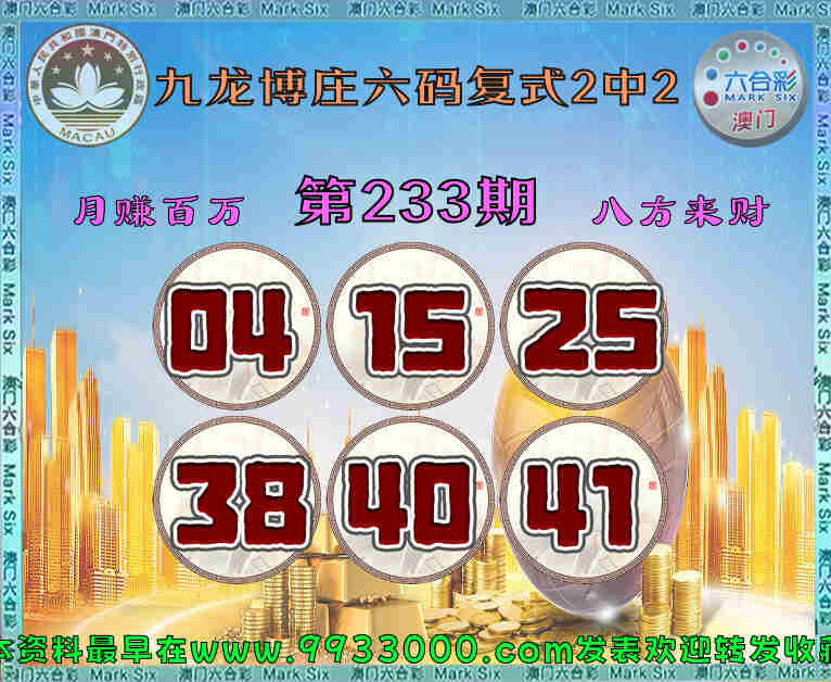 271期:『九龙博庄』 🍃六码复式2中2🍃