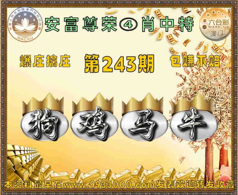 243期:『安富尊荣』 🥠④肖中特🥠【.鸡.马.牛】开:狗08
